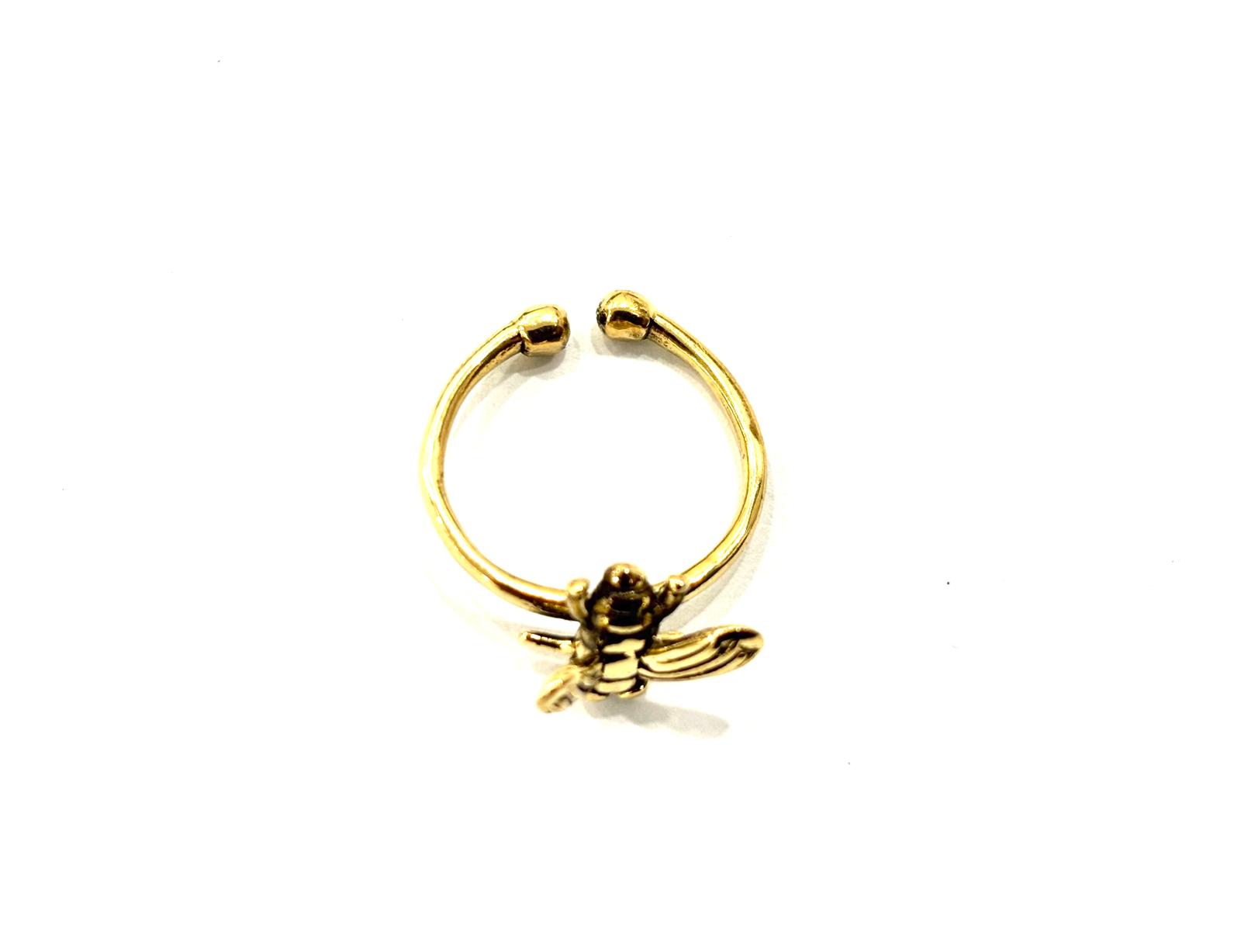 Sottile fascia tondeggiante che termina inferiormente con due piccole sfere, che lo rendono confortevole e regolabile. Al centro si posa un’ape tridimensionale, scolpita con equilibrio tra volume e dettaglio: il corpo a rilievo è definito da incisioni a righe così come le ali, che donano movimento e carattere al design. Un gioiello leggero ma presente, capace di richiamare un immaginario naturale e raffinato.