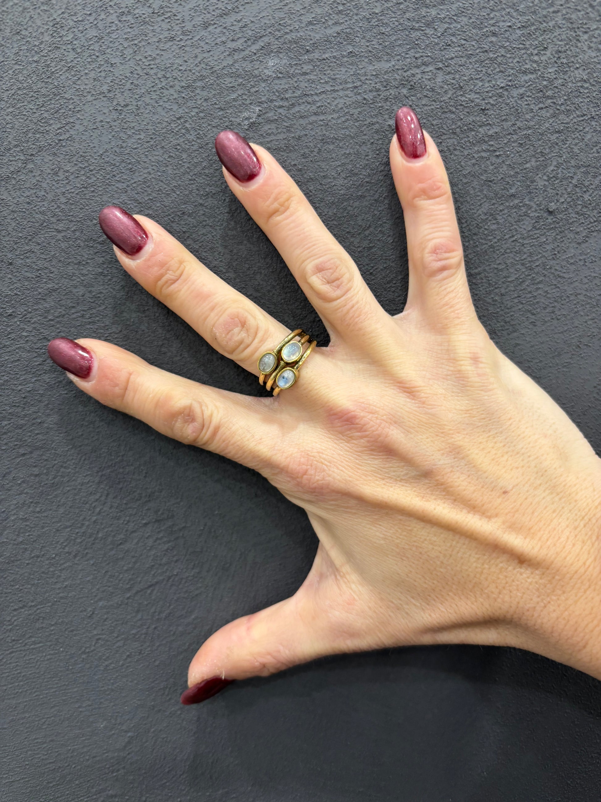 ANELLO OTTONE - TRIS LABRADORITE BIANCA