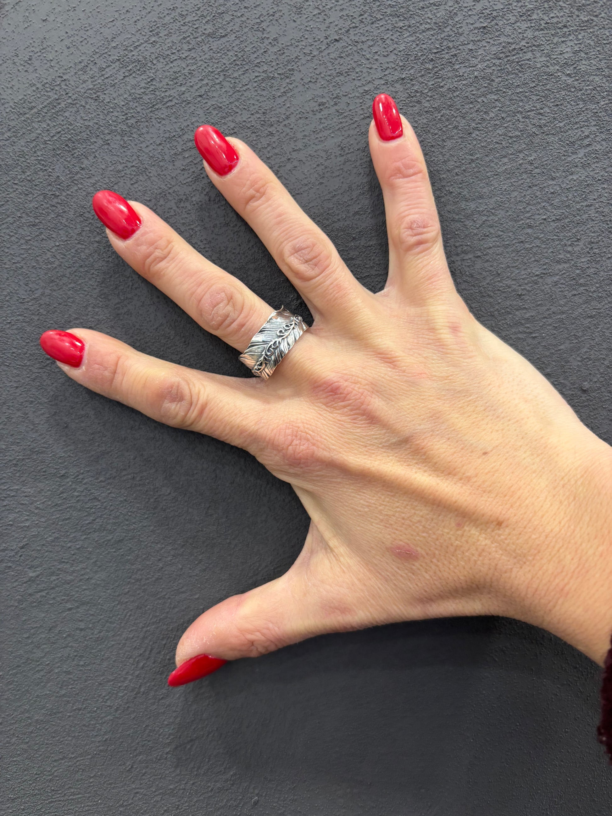 ANELLO PIUMA - INCISIONE TRIBALE - ARGENTO 925