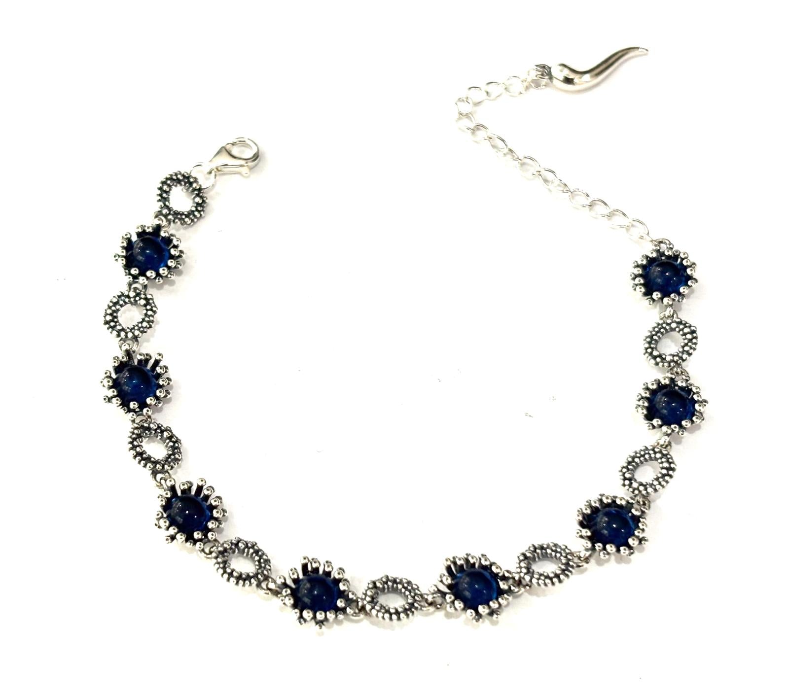 BRACCIALE LAVORAZIONE MICROSFERE E PIETRE NATURALI - ARGENTO 925 BRUNITO
