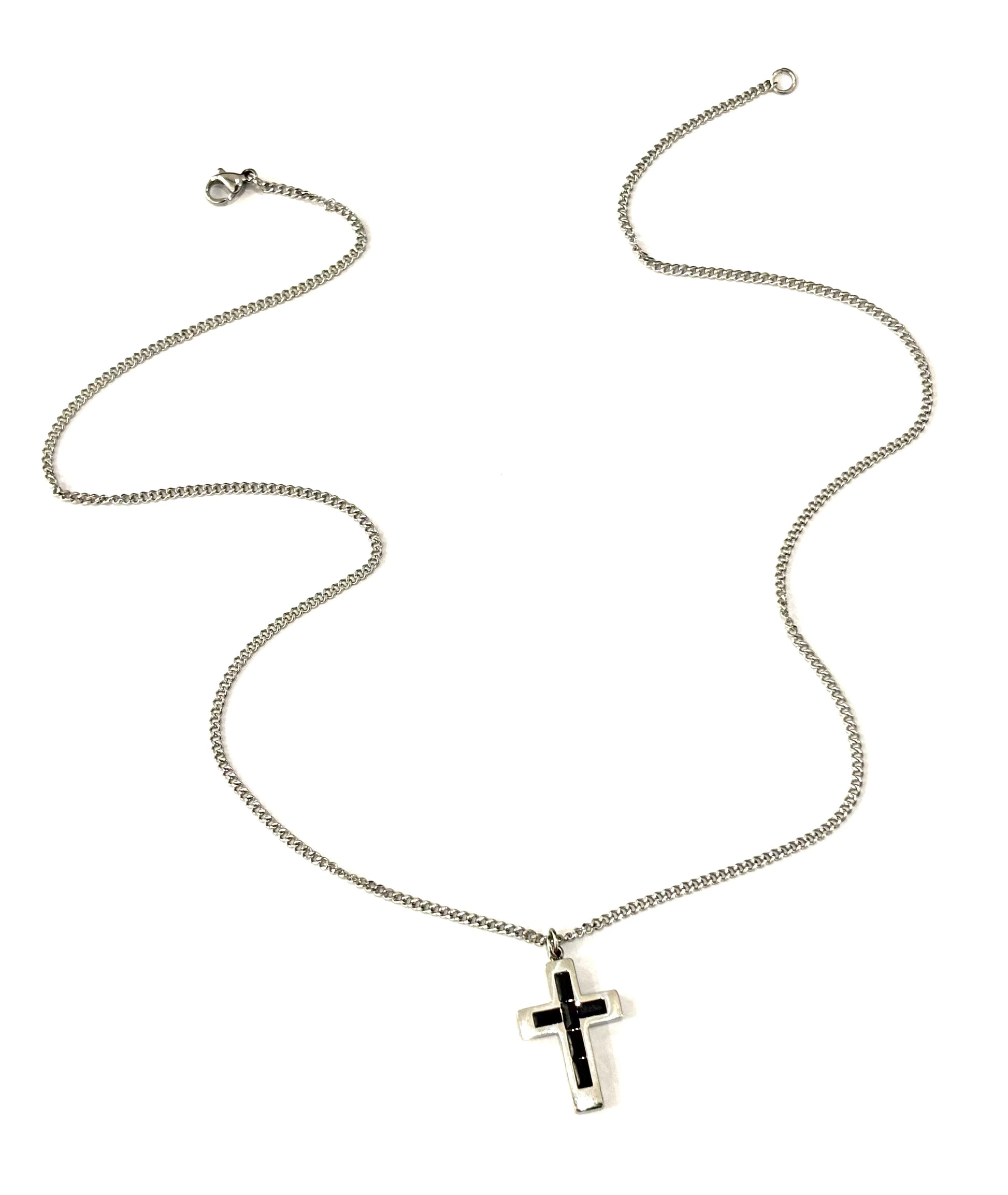 COLLANA CROCE STRASS - CATENINA GROUMETTE ACCIAIO - CIONDOLO CROCE ACCIAIO E STRASS