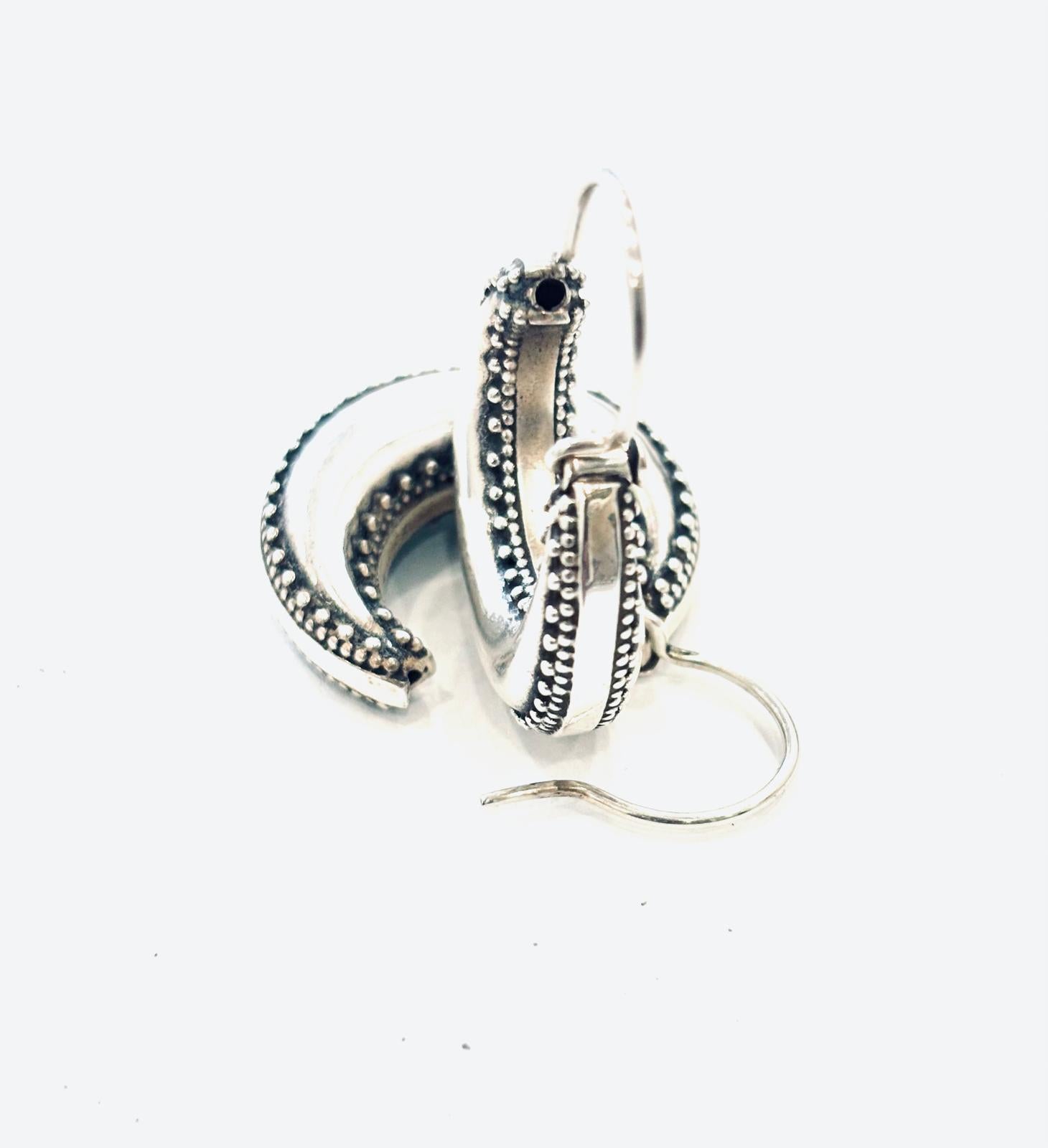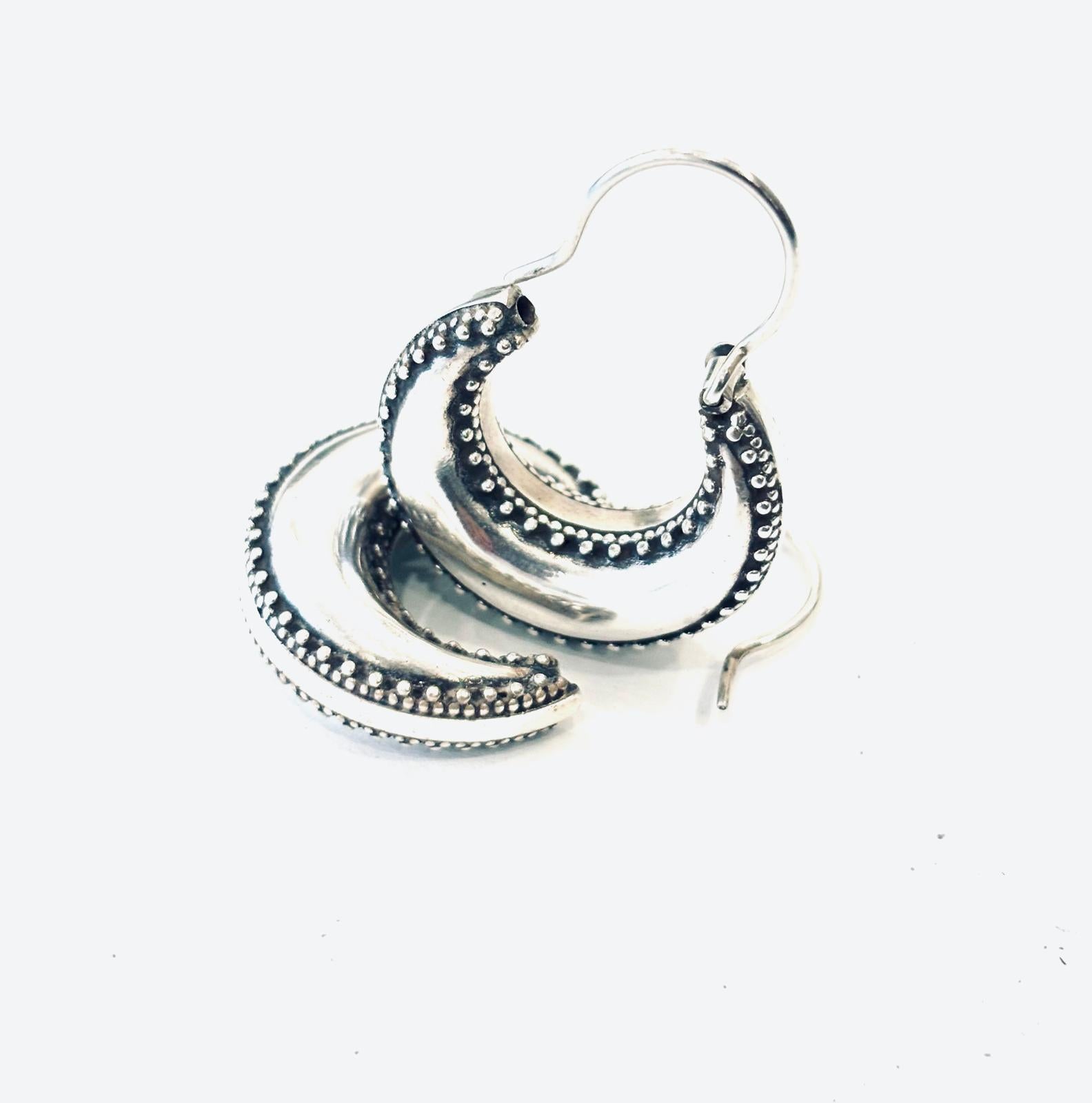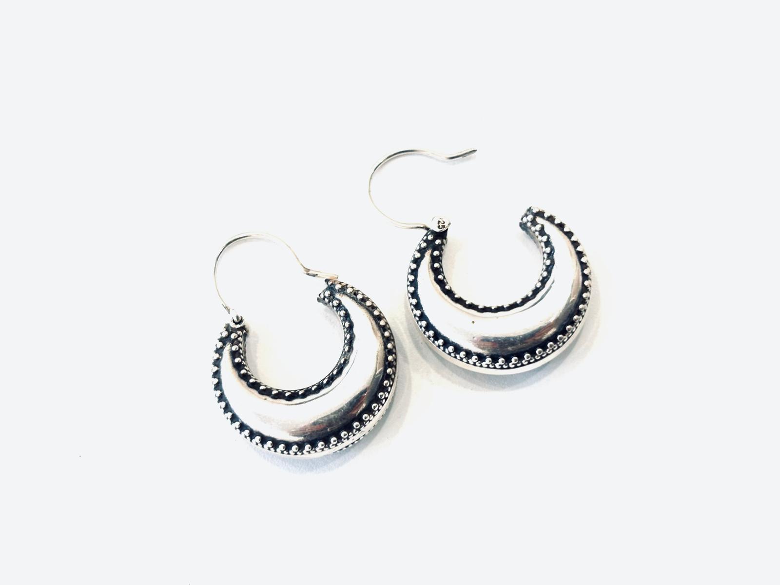 I nostri splendidi cerchi in Argento 925 rappresentano la perfetta fusione tra tradizione artigianale e design intramontabile. La loro forma a mezza luna bombata, arricchita da una raffinata lavorazione a microsfere, dona carattere e unicità, trasformandoli in un gioiello dal fascino senza tempo.
