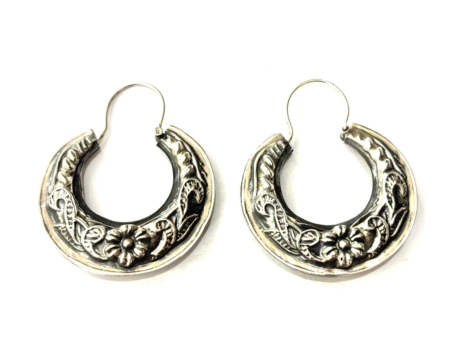 I nostri cerchi in argento 925 rappresentano al meglio il nostro inconfondibile stile. La superficie è arricchita da una raffinata lavorazione a rilievo con motivi floreali e dettagli vegetali, che donano profondità e carattere a questo gioiello intramontabile. Il design semicircolare, elegante e deciso, li rende un accessorio versatile da indossare con qualsiasi look.