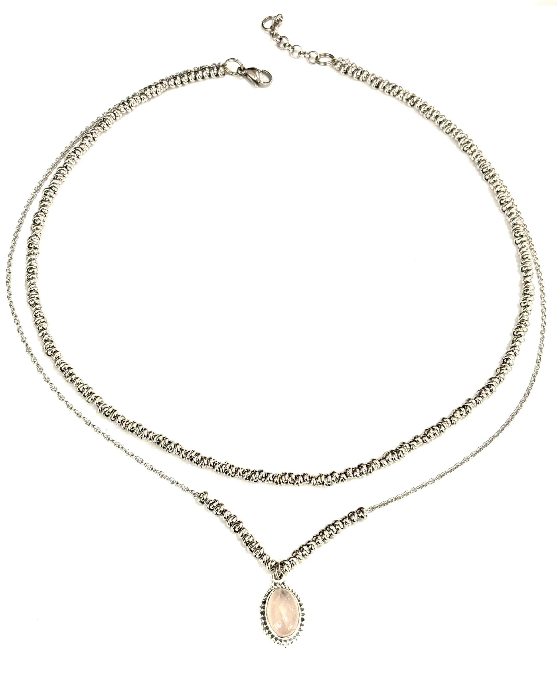 COLLANA DELICIOUS ACCIAIO - CIONDOLO QUARZO ROSA ARGENTO 925
