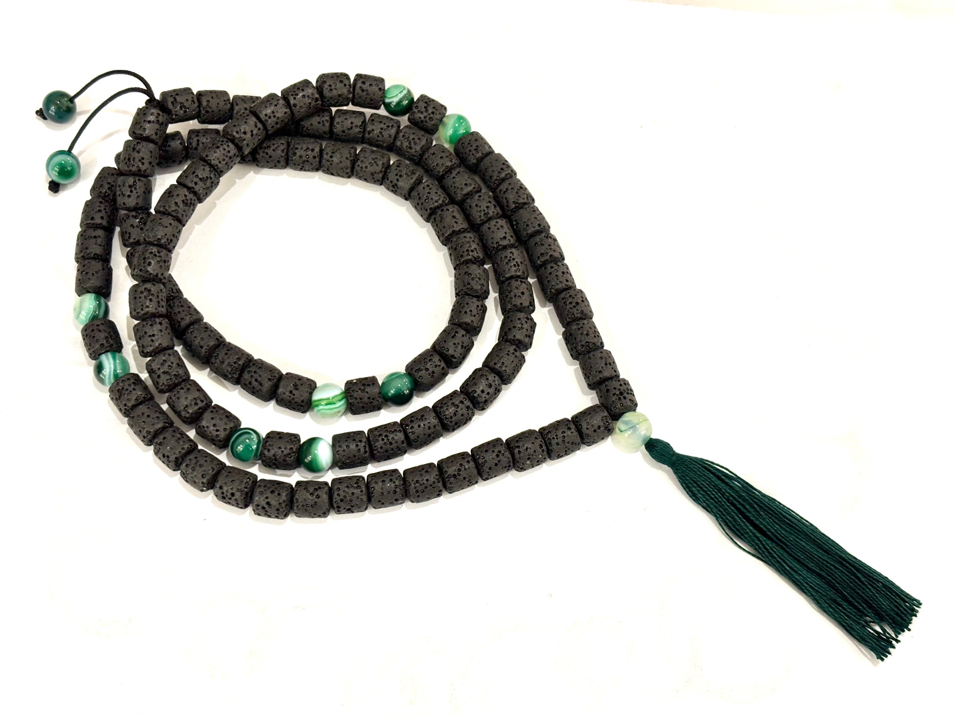 COLLANA MALA TIBETANO - PIETRA LAVICA BARILOTTO - AGATA VERDE STRIATA 8mm