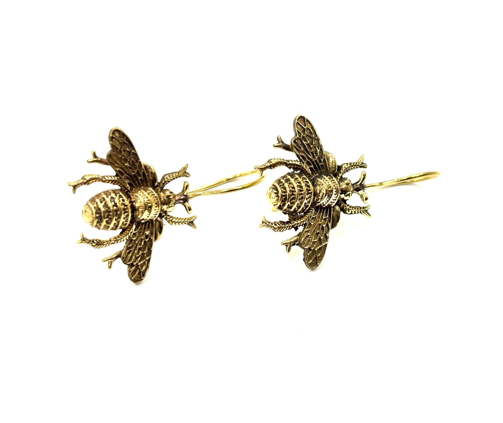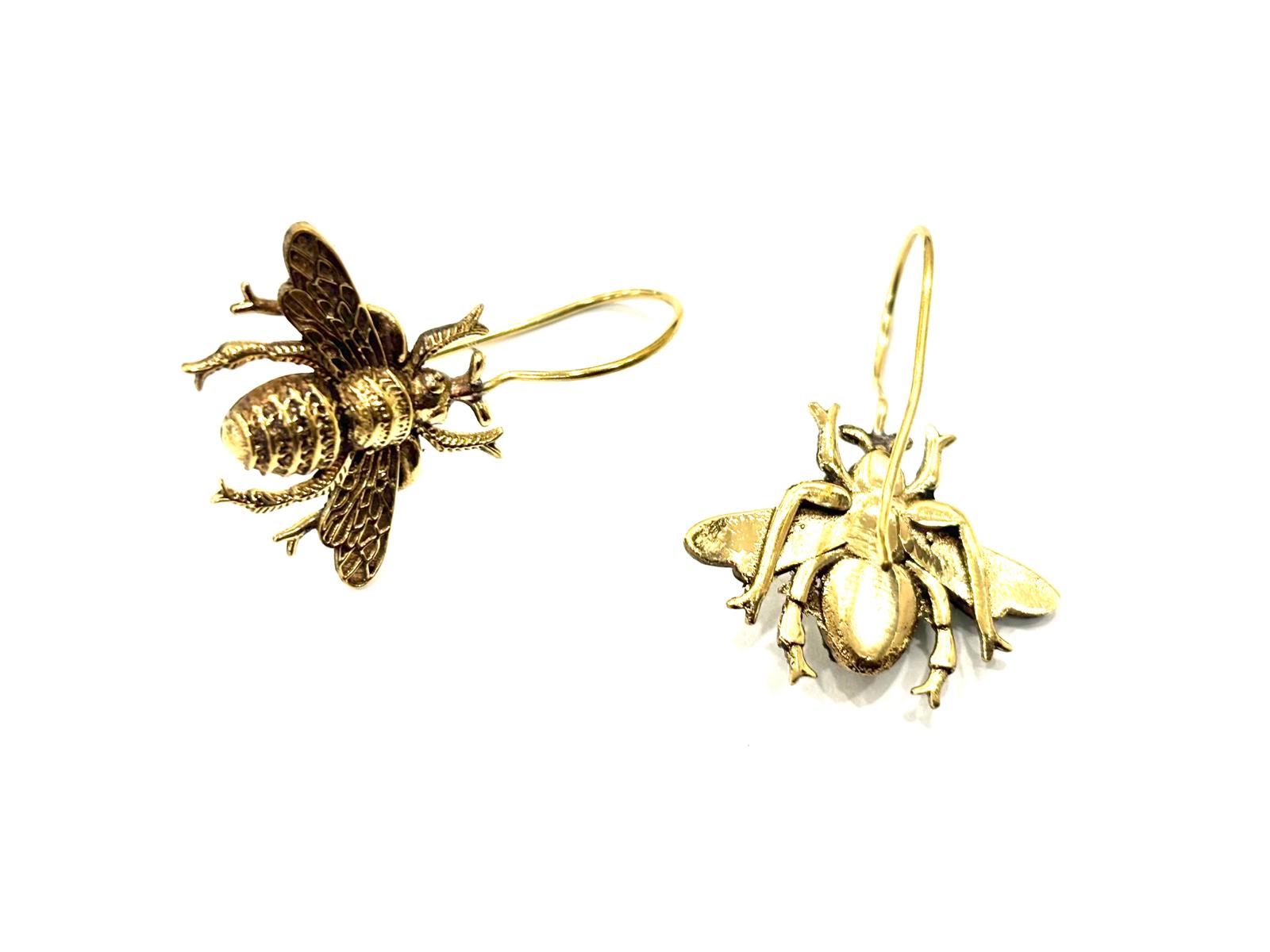 Orecchini in ottone con ape finemente lavorata. La monachella rigida sorregge un'ape dalle ali incise e definite, semi-tridimensionale sul fronte e perfettamente liscia sul retro per garantire un comfort elegante, leggero ma di grande presenza. Simbolo di laboriosità, prosperità e intuito, l’ape porta con sé un significato positivo e delicato, ideale per chi ama gioielli che raccontano qualcosa.
