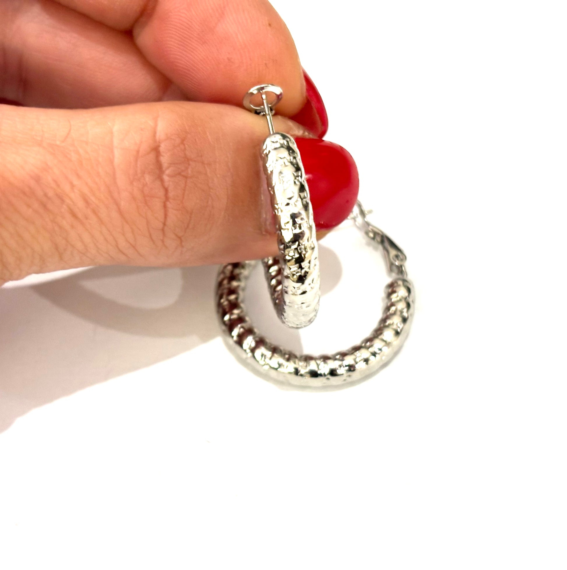 Aggiungi un tocco di eleganza senza tempo con la coppia di cerchi a baionetta in acciaio inossidabile, dal design a sezione tonda incisa. Disponibili nelle finiture gold (dorato) e silver (argentato), questi orecchini sono perfetti per chi ama uno stile luminoso e raffinato.